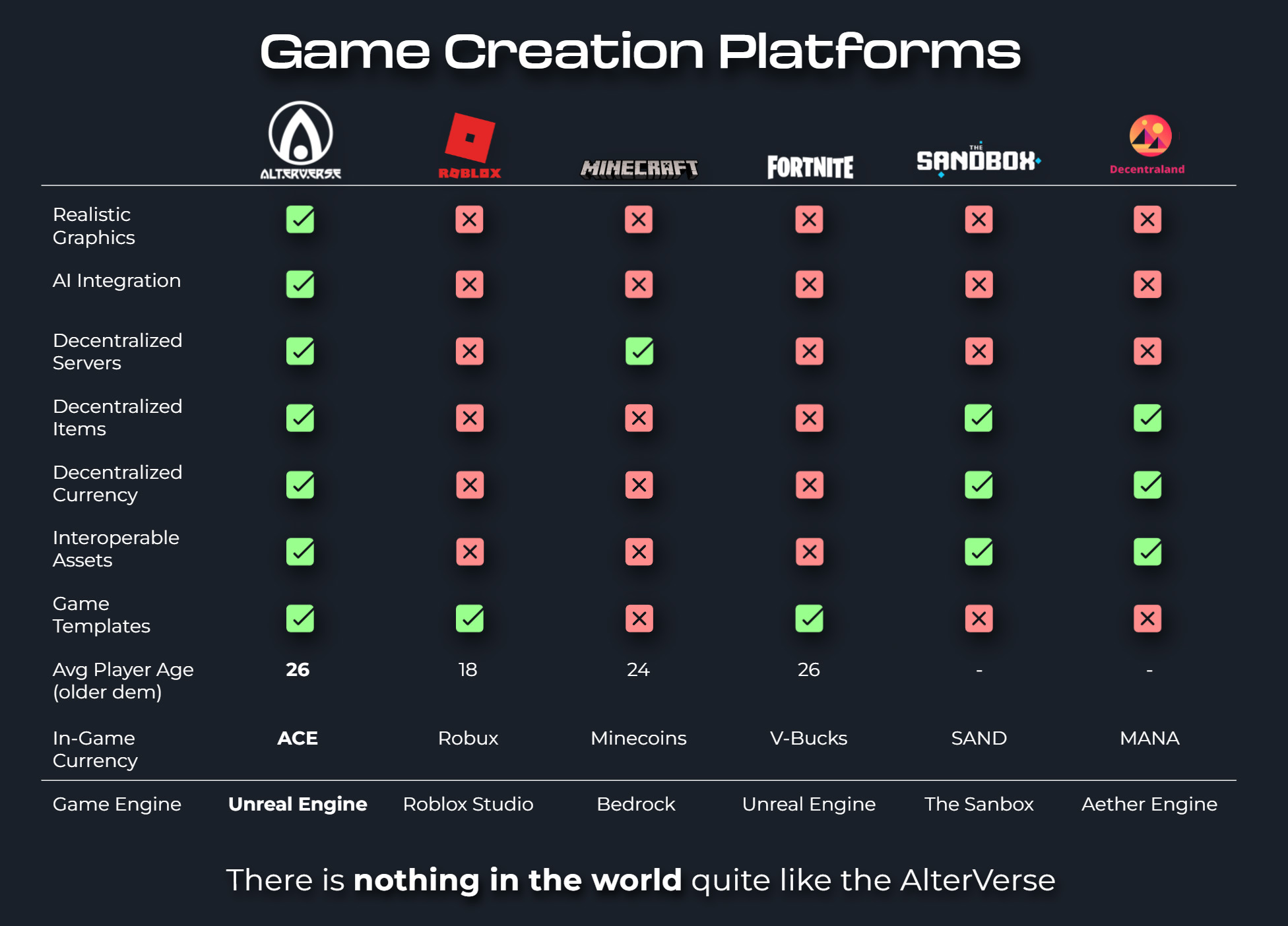 AlterVerse is a world and game creation platform that creators can use to build Web3 games with realistic graphics and AI integration.